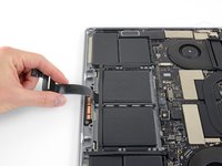 Use a spudger to gently pry up the locking flap on the ZIF connector for the battery board data cable.