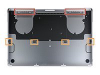 Use a P5 Pentalobe driver to remove six screws securing the lower case, of the following lengths: