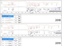The differing peaks and valleys on the FTIR spectra for the two samples show us that they are different materials. But what are they?