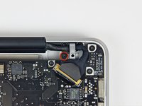 Pull the battery cable connector away from its socket on the logic board and remove the battery from the upper case.