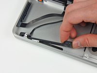 Pull the battery cable connector away from its socket on the logic board and remove the battery from the upper case.