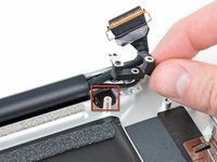 • Small plastic plates adhered near the display hinges seem to keep the display data cable and antenna cable bundle stationary while the display is opened and closed.