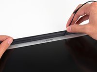 Use the guitar pick to gently pry up the adhesive along the top edge securing the bezel to the display assembly.