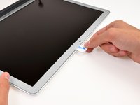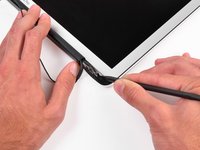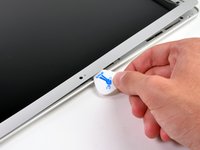 Carefully insert a guitar pick between the top left corner of the bezel and the display assembly.