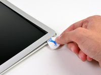 Wedge a guitar pick in between the bezel and display assembly near the inner bottom left corner.