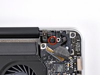 Remove the 8.6 mm Phillips screw securing the display data cable retainer to the upper case.