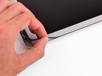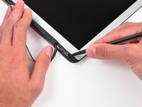 Use a heat gun to soften the adhesive under the bezel along the left and top left edges of the display.