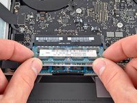 Release the tabs on each side of the RAM chip by simultaneously pushing each tab away from the RAM.