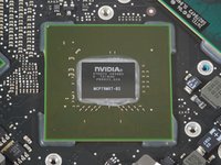 • Here are the two Nvidia chips! They occupy a significant amount of the logic board. There's no way both of these puppies could fit in a MacBook Air.