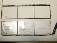 • The individual battery packs, as well as the circuit boards, are held together in a thin plastic frame by the use of plenty of very sticky white paper.