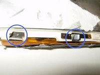 • Removal of the tape shows that the connectors from the ribbon cable are spot welded to the battery.
