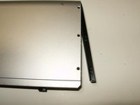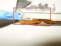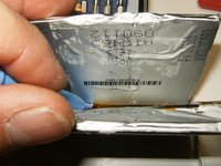 • The cable side of the battery has some sort of plastic endrail. Remove the paper from the rail with the plastic tool.