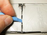 • With all the sticky paper separated from the ends of the battery packs, the plastic frame can be removed.
