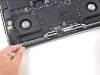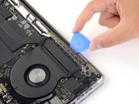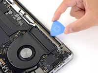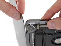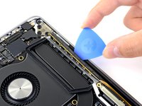 Slide the opening pick around the nearest corner and then halfway up the side of the MacBook Pro.