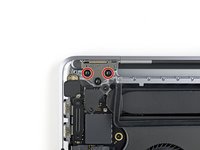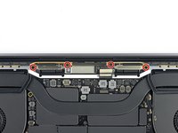 Use a T3 Torx driver to remove the four 2.0 mm screws from the hinge covers (two screws on each side).