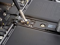 Use a spudger to gently pry up the locking flap on the two ZIF connectors for the keyboard cables.