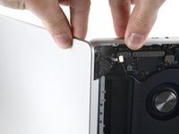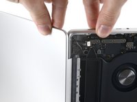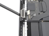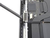 Use the flat end of your spudger to pry up and disconnect the left display press connector from the logic board.