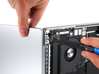 Use the flat end of your spudger to pry up and disconnect the trackpad cable press connector from the logic board.