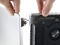 Grab and rotate the outer edge of the hinge covers toward the logic board to free them from the lip of the frame.