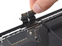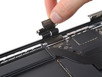 Use the point of your spudger or a clean fingernail to flip up the small locking flap on the battery data cable ZIF connector.