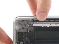 Use tweezers or your fingers to remove the right display cable buffer from the frame.