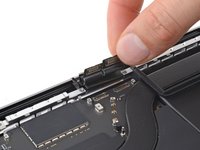 Use the point of your spudger or a clean fingernail to pry up and disconnect the lid angle sensor press connector.