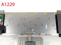 If you have a MacBook Pro 17" Model A1229, refer to the first picture. There are six locking tabs along the back edge of the keyboard holding it in place. These tabs must be straightened before you can remove the keyboard.