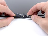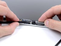 Lift the black plastic flap attached to the display data cable retainer and rotate it toward the DC-In side of the MacBook.