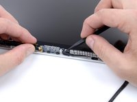 Remove the last remaining T6 Torx screw securing the display to the upper case.