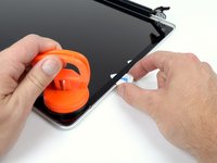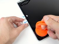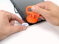Before starting, be sure to clean the display glass with a lint-free cloth moistened with a mild solution; it will make the suction cup adhere better, and will make checking for dust on reassembly easier.