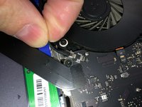 Use the tip of a spudger to flip up the thin steel retaining clip securing the display data cable to its socket on the LCD.