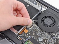 If present, grab the plastic tab attached to the battery connector and pull it toward the front edge of the device. For Late-2011 models the battery connector will not have a tab and is simply a plug that inserts straight down into the motherboard--to remove pry the plug straight up.