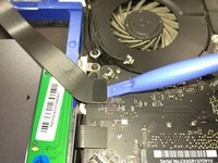 Peel the piece of tape covering the display data cable connector away from the edge closest to the LCD.