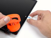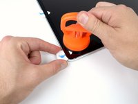 With the panel sufficiently heated, fasten a heavy-duty suction cup near the lower right corner of the display glass.