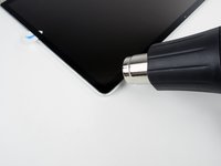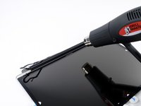 With the heat gun set to low, heat the bottom edge of the display to soften the adhesive holding the glass in place.