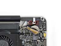 Remove the two outer 6.8 mm T6 Torx screws from each of the two display brackets (four screws total).