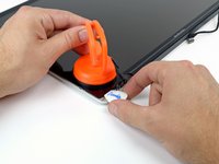 Lift one of the top corners of the LCD panel out of the rear bezel with a plastic opening tool.