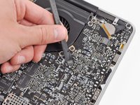 Remove the three 3.1 mm Phillips screws securing the left fan to the logic board.