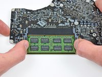 Release the tabs on each side of the RAM chip by simultaneously pushing each tab away from the RAM.