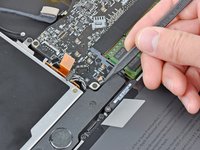 Use the flat end of a spudger to lift the left speaker and microphone connectors out of their sockets on the logic board.