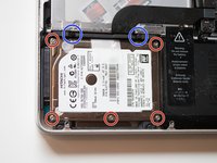 To install a new hard drive into this computer, follow these instructions in reverse order. Begin by unscrewing the mounting screws from the old hard drive and screwing them into the new hard drive.
