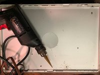Drill the holes, then rivet the topcase to the back of the metal LCD panel