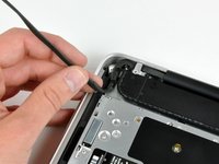 Use the tip of a spudger to pry both AirPort antenna connectors out of their sockets on the AirPort board.