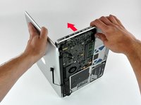 Grab the upper case with your right hand and rotate it slightly toward the top of the display so the upper display bracket clears the edge of the upper case.