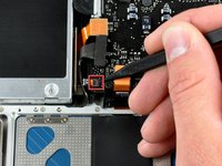 Disconnect the battery cable connector by pulling it straight away from the logic board.