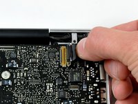 Use the plastic tab on the the display cable and rotate it towards the DC-in part of the Mac.