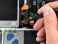 Use the flat end of the spudger to pry the subwoofer cable straight from the logic board.