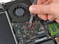 Use the flat end of a spudger to pry the fan connector straight up off the logic board.