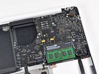 With the flick of our trusty spudger, we continue to disconnect several connectors around the perimeter of the logic board, as well as removing the RAM.