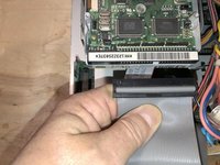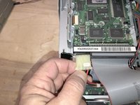 Next remove the data cable. The red stripe always connects to pin 1 of the connector